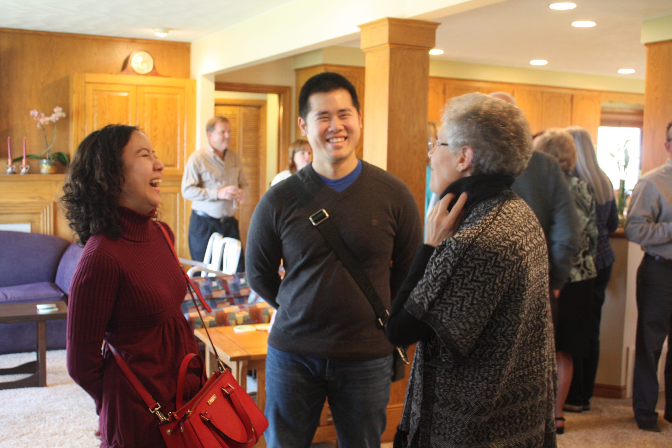 - BSO Board Member Peter Chang and his wife have a laugh with Claudette Laureano