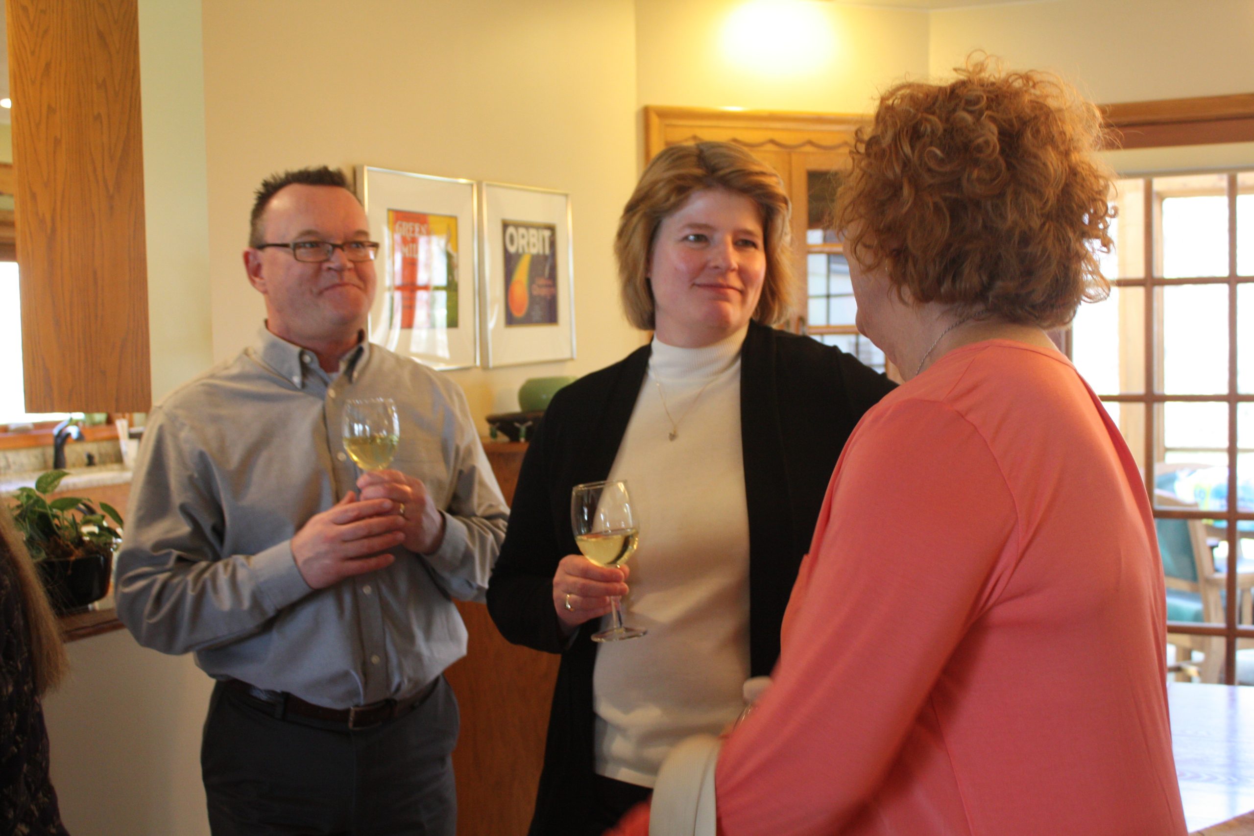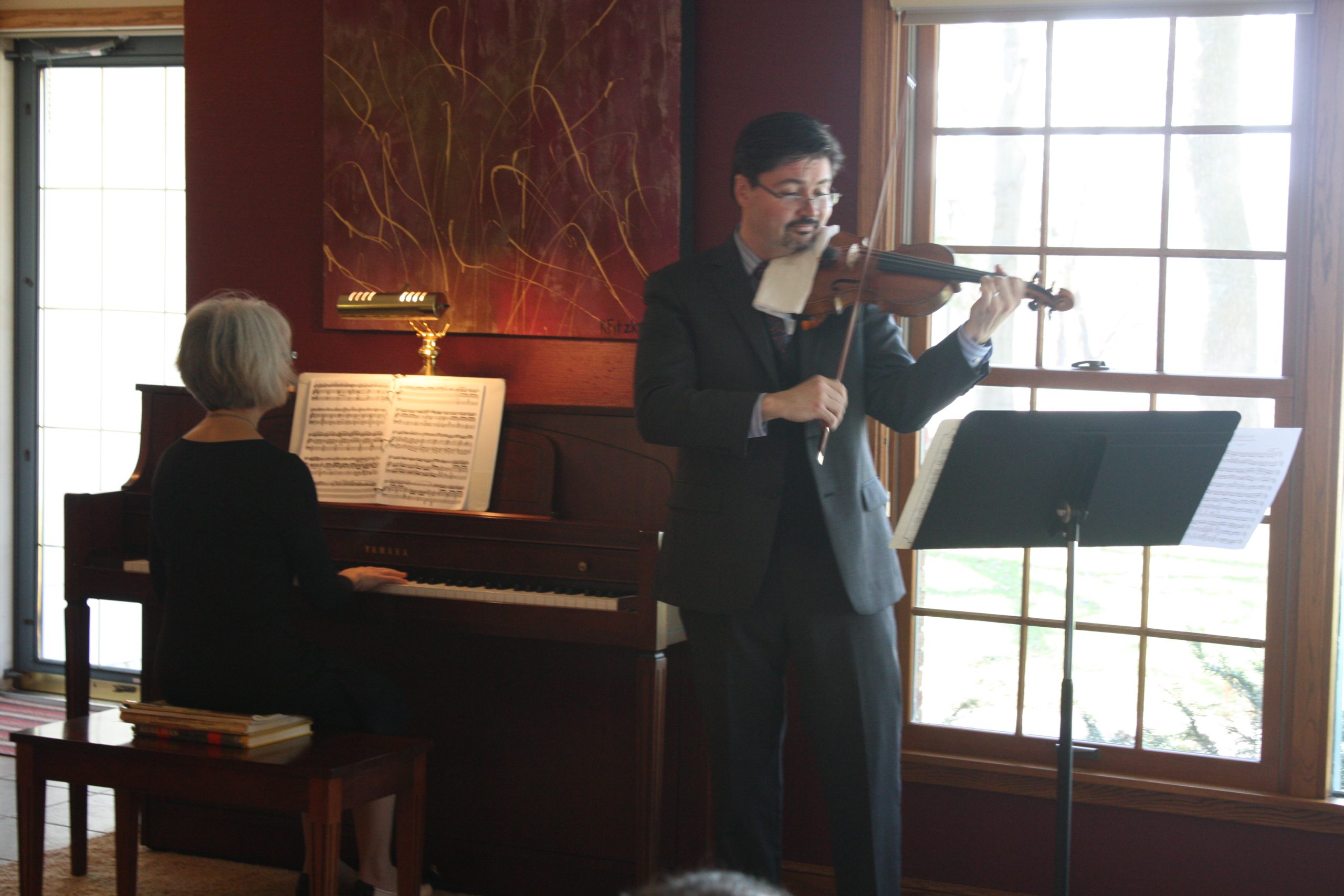 - BSO Board President Becky Jyrkas chats with fellow BSO musician Nancy Jacobson